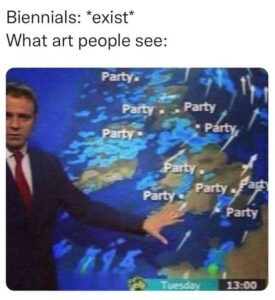Your memes parody the idiosyncrasies of curator-speak, institutional wrongdoings and “art people”. Why do you think your approach has struck a chord with so many people?